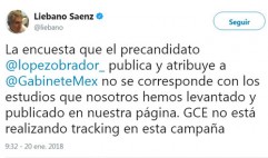 | Liébano Sáenz, presidente del Gabinete de Comunicación Estratégica (GCE), señaló en Twitter que la encuesta que el precandidato de la coalición Juntos Hare... 2018-01-20 17:50:11 |