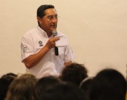 | El precandidato presidencial dijo que su objetivo será la cobertura universal en la preparatoria y enfrentar el bullying como un problema serio