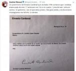 | El presidente electo Andrés Manuel López Obrador publicó en su cuenta de Twitter una carta del poeta y revolucionario nicaragüense Ernesto Cardenal, quien l... 2018-08-18 20:42:35 |