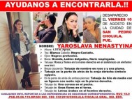 | Yaroslava Nenastyina desapreció el pasado 10 de agosto; la Fiscalía General del Estado detuvo a Alfonso M por su probable participación en el crimen