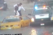 Policía de Saltillo rescata a pasajera de taxi atrapada en inundación |