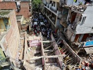 | Un edificio de cuatro pisos se viene abajo en la ciudad de Nueva Delhi; los equipos de emergencia han rescatado a 12 personas con vida