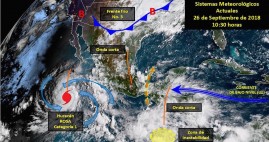 | El organismo dependiente de la Comisión Nacional del Agua (Conagua) informó que el meteoro presenta vientos de 120 kilómetros por hora, con rachas se 150 ki... 2018-09-26 13:01:50 |