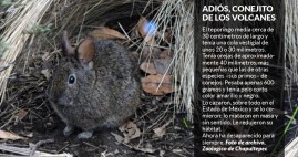 | El último avistamiento del también conocido como conejo zacatuche fue en 2003, el crecimiento urbano y las actividades agropecuarias que afectan al bosque d... 2018-09-28 09:43:43 |