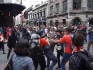 | Los jóvenes se identificaron como alumnos del CCH irrumpieron en la movilización a la altura de la calle 5 de Mayo