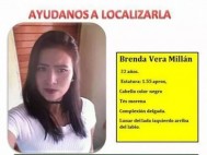 | Brenda Vera Millán, de 22 años de edad, fue vista por última vez el pasado lunes en el puente de Ochote Chico, a la altura del kilómetro 18 de la carretera ... 2018-10-24 20:28:29 |