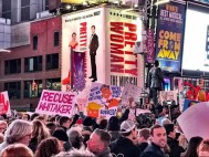 | Manifestantes protestan contra Donald Trump en Time Square, Nueva York; le acusan de obstruir la justicia tras la destitución de Jeff Sessions