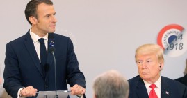 | El presidente de Francia hace un alegato del multilateralismo como forma de evitar nuevos conflictos, mientras su par de EU lo escuchaba