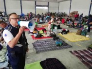 | A los migrantes centroamericanos se les atiende en el albergue instalado en el Auditorio Benito Juárez