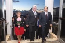 | Encinas dio la bienvenida al Presidente de la República de Guatemala, quien estará en la ceremonia de toma de protesta al presidente electo de México
