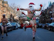 Cientos de Santa Claus corren en traje de baño en Boston |