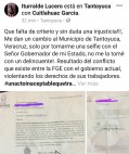 | Me dan un cambio al Municipio de Tantoyuca, Veracruz, solo por tomarme una selfie con el Señor Gobernador de mi Estado, ¡no me la tomé con un delincuente! 2019-01-16 11:55:04 |