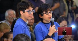 Dos niños reporteros preguntan al Presidente, en la conferencia, sobre los menores desaparecidos |