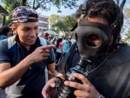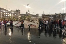 | La fuerte lluvia no fue impedimento para que el grupo de 150 estudiantes chiapanecos se manifestaran frente al Palacio Nacional
