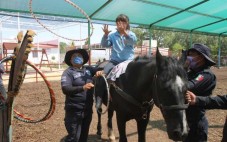 Caballos policía dan sesiones de equinoterapia a niños con capacidades diferentes |