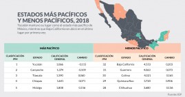 | De acuerdo con el Índice de Paz 2019, los niveles de violencia más altos se sitúan en los estados de Baja California seguido de Guerrero, Colima, Quintana R... 2019-04-10 18:31:23 |