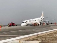 | Un avión birmano realiza un aterrizaje de emergencia en el aeropuerto local de Mandalay debido a un problema en el tren de aterrizaje delantero