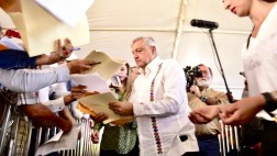 En el poblado Quintín Arauz del municipio de Centla, Tabasco, el mandatario pidió ayuda a los chontales para que los programas sociales se cumplan