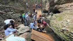 Puente colgante del Paseo Ribereño de Cuernavaca se cae; alcalde cayó a la barranca de Amanalco, Morelos |