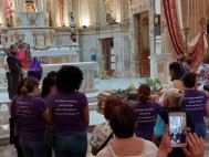 En la Basílica de Zapopan, en punto de las 12 horas, llegaron con ropa morada, globos y flores para dar la despedida a Luz Raquel