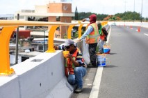 Trabajadores del Ayuntamiento realizan labores de mantenimiento en barandales de protección del puente vehicular de Lázaro Cárdenas |