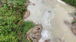 El agua es color casi café con una especie de nata, la cual se forma por los sueros de las queseras que caen al afluente