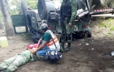 Seis lesionados, dos de gravedad, fue el resultado de la volcadura de un vehículo todoterreno del ejército mexicano