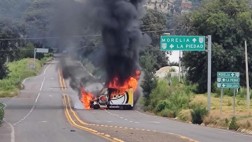 Normalistas de Michoacán incendian camión repartidor en municipio de Purépero |