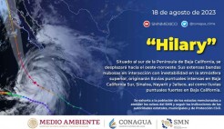 | La Conagua confirmó que Hilary se fortaleció a huracán categoría 4 la mañana de este viernes 18 de agosto; se esperan lluvias intensas en 5 estados y muy fu... 2023-08-18 16:59:14 |