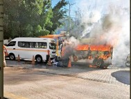 | Un incendio de un camión de pasajeros se registró en la autopista México-Puebla hoy; no hubo heridos