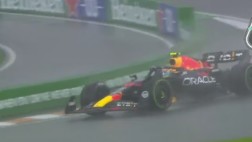 GP de Países Bajos: Checo Pérez sufre incidente; cae a la sexta posición y la carrera se detiene por lluvia |