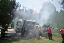 Normalistas de Ayotzinapa incendian e impactan vehículo contra sede militar en Iguala |
