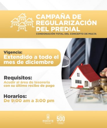 ¡Aprovecha la Campaña de Regularización del Predial!...