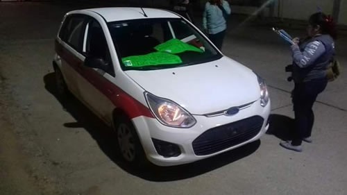 Entretanto, en el parabrisas del vehículo marca Ford Fiesta Ikon con color oficial de taxi sin número económico, colocaron dos cartulinas de advertencia entre grupos al margen de la ley, con presuntos mensajes en contra de secuestros y extorsiones.