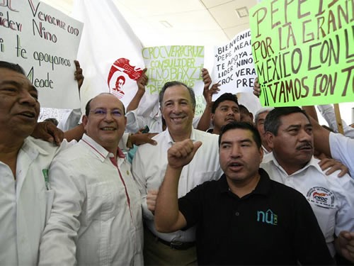 Meade fue recibido por el precandidato del PRI a la gubernatura de dicha entidad, José Francisco Yunes Zorrilla; el presidente del Comité Directivo Estatal de este instituto político, Renato Alarcón Guevara; así como senadores y diputados locales.
