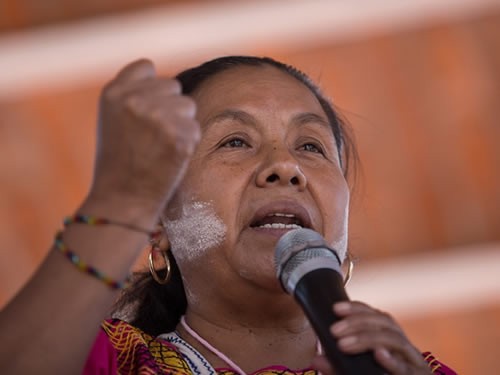 No hemos cumplido con las firmas, porque la implementación del mecanismo del INE no nos favorece mucho, el levantar una firma en un celular en las regiones indígenas está muy lejos de nuestra realidad”, expresa. Con poco más de 150 mil firmas, “Marichuy” dice que le van a echar ganas. “Lo más importante para nosotros es esa construcción y por eso vamos lentos porque vamos asegurándonos que la palabra llegue, se quede y que quienes la reciban nos acompañen a caminar, un camino que no se va a terminar en 2018 sino que va a continuar inclusive después." En entrevista, “Marichuy”, vocera de los pueblos indígenas del país, comenta que a pesar de que queda poco tiempo y faltan muchas firmas, no se siente derrotada porque cuando surgió la propuesta dijimos: “que era organizativa, y que si no se concretan las firmas, pero logramos llegar y articular comunidades y más hermanos de la ciudad, eso es una ganancia, eso es lo que se quiere”. Reitera que lo que más trabajo le ha costado es la recolección de las firmas, son los aparatos telefónicos, porque la gente se acerca y quiere firmar “y bueno no hay lugar, no hay red para poder enviar las firmas”. Ellos van a decir que ya dejaron la opción de municipios de alta marginación que lo pueden hacer con firma, pero hay comunidades más marginadas donde ni siquiera hay luz. No tienen la misma oportunidad, pero vamos a seguir recorriendo los estados que nos faltan”, expresa. "Marichuy" dice que durante sus recorridos ha escuchado los principales problemas y carencias que tiene la gente, que entre otros son de carácter agrario, heredados y que les ocasionan muchas "broncas" por no solucionarse el problema de la tierra. |