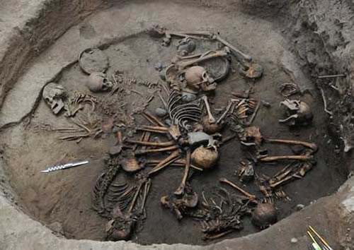 El descubrimiento, registrado a metro y medio de profundidad, constituye por ahora el primer entierro con tal cantidad de individuos reportado para el periodo Preclásico en el sitio de una de las primeras aldeas en la cuenca de México, en terrenos actuales de la Universidad Pontificia de México (UPM), cerca de una barda, según un comunicado. El principal entierro, descubierto por Jimena Rivera Escamilla, quien coordina el equipo, y su colega Martha García Orihuela, contiene en dos metros de diámetro los restos de 10 individuos que debieron ser enterrados en un mismo momento. Según las antropólogas físicas Lucía López Mejía y Sonia Rodríguez Martínez, de los cuerpos, dos corresponden a individuos femeninos y uno masculino. Se está a la espera de determinar el sexo de los restantes. En su mayoría eran adultos jóvenes; también se encuentra un adulto, un infante que tenía entre tres y cinco años, y un niño de meses. El acomodo apunta a un aspecto ritual Las especialistas coinciden en que su acomodo apunta a un aspecto ritual. Colocados directamente sobre la tierra, los cuerpos fueron enlazados, de modo que húmeros y cúbitos (huesos de brazo) de un individuo, aparecen bajo los lumbares (correspondientes a la columna vertebral) de otro. “Tenemos diferentes deposiciones anatómicas: ventral flexionado, hiperflexionados con los miembros inferiores doblados hacia la pelvis, decúbito dorsal con los miembros hacia el abdomen, y un decúbito ventral extendido. Los cuerpos fueron enterrados ‘interactuando’ entre ellos, por eso hablamos de un mismo evento”, explica López Mejía. Foto La arqueóloga Jimena Rivera Escamilla participó en el descubrimiento de las osamentas humanas en TlalpanFoto Mauricio Marat/ INAH A estos personajes les fueron ofrendados cajetes, cuencos, ollas y tecomates, miniaturas y grandes. A algunos les colocaron esferas cerámicas y piedras en las manos. El asentamiento establecido al oriente de Cuicuilco, cuando éste iniciaba su crecimiento, fue ocupado lo largo de cinco siglos, en el periodo llamado Formativo medio y tardío, entre las fases Zacatenco (700-400 aC) y Ticomán (400-200 aC), confirman las investigaciones desarrolladas. Trabajos en predio de la Universidad Pontificia de México En cinco meses de labores de salvamento en la UPM, se han localizado más de 20 fosas troncocónicas: seis contenían entierros individuales, en su mayoría de adultos. La fosa troncocónica es llamada así por ser una excavación hasta llegar al tepetate con forma de cono truncado o botellón, es decir, con un diámetro mayor en el fondo que en la boca. Servían como lugares de almacenamiento, depósitos o tumbas. El panorama sobre los primeros asentamientos humanos al sur de la Ciudad de México se ha ido revelando mediante salvamentos arqueológicos efectuados en predios de calles como Benito Juárez y Guadalupe Victoria, donde el arqueólogo Alejandro Meraz en 2006 había registrado restos de la aldea preclásica de Tlalpan. |