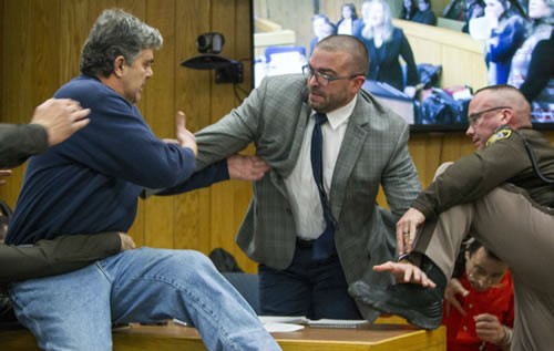 | Randall Margraves, padre de una de las víctimas, perdió el control e intentó atacar al exmédico de la Universidad de Michigan y del equipo de gimnasia olímpica de Estados Unidos. | ||||||
