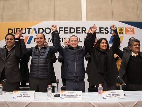 Así lo dio a conocer el coordinador de los diputados del PAN, Marko Cortés, quien anunció que el Frente alista una iniciativa sobre gobiernos de coalición en la que se presentará esta premisa. Lo que hoy puedo decirles es que el gobierno de coalición será que el propio Secretario de Gobernación sea propuesto por uno de los partidos que integran la propia Coalición, no del partido que propuso al candidato a la presidencia de la República. Será también que varios de los secretarios de Estado sean ratificados por las Cámaras, de Diputados, de Senadores”, indicó. Expuso que la propuesta que trabaja el Frente es para reformar la Constitución y crear además una ley de gobiernos de coalición, pero espera que se avale en el Congreso luego de las elecciones, cuando el PRI haya perdido representación. El panista confió que pronto termine el modelo presidencialista y la responsabilidad de gobierno recaiga en los poderes Ejecutivo y el Legislativo. Es una forma de la cual ya se va a cogobernar con responsabilidad compartida, del Ejecutivo con el Legislativo, porque lo que nos interesa es no solamente ganar una elección, sino tener la gobernabilidad para la toma de decisiones”, expresó. Cabe destacar que los dirigentes nacionales del PAN, PRD y MC pidieron a los diputados que en este último periodo ordinario de sesiones se enfoquen en sacar todos los ordenamientos legales de los gobiernos de coalición. |