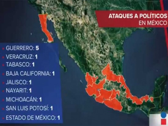 Guerrero encabeza la lista de los asesinatos, con 5 crímenes, en otros estados como Veracruz, Tabasco, Jalisco, Michoacán, y el Estado de México se han registrado un solo caso.