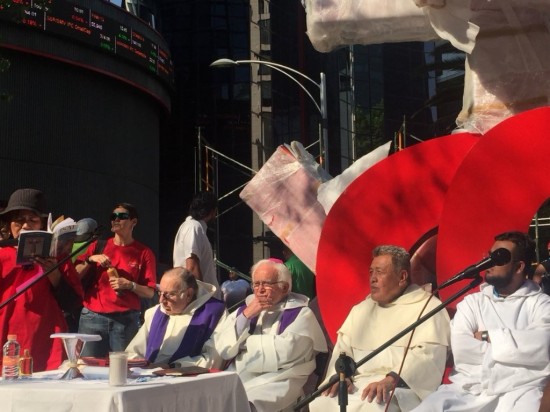 | Como parte de la jornada de protesta los deudos también llevaron a cabo un mitin y una misa celebrada en el Ángel de la Independencia por los sacerdotes Miguel Concha y Raúl Vera. También asistieron diversas organizaciones que han apoyado la demanda del rescate.