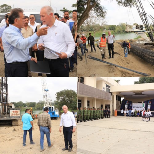 | *Jorge Vera Hernández acudió a San Miguel para observar los trabajos del puente “Ojite”, en nueve meses quedará terminado. | ||||||