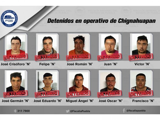 Indicó que lo anterior, con base en las indagatorias y diligencias desahogadas, de acuerdo a la detención que se llevó a cabo en San Antonio Matlahuacales, tras enfrentarse con Policía Federal y la Policía Municipal de Chignahuapan y Zacatlán. La dependencia, en un comunicado, dijo que José Crisóforo “N”, Felipe “N”, José “N”, Juan “N”, Víctor “N”, José Germán “N”, José Eduardo “N”, Miguel Ángel “N”, José Oscar “N”, quedaron a disposición del Agente del Ministerio Público de la Fiscalía de Investigación Regional. También fueron puestos a disposición de dicha autoridad, Francisco “N”, José Benigno “N”, Bartolo Aureo “N”, Juan “N”, Jesús Raúl “N”, Edgar Ernesto “N”, Omar “N”, Efraín “N” y María Fernanda “N”. Tras desahogar las diligencias pertinentes, se judicializó el caso. La Fiscalía mencionó que durante la audiencia de control de detención, el Juez de Control calificó la misma como legal y el representante social llevó a cabo la formulación de imputación, como medida cautelar impuso prisión preventiva oficiosa en contra de los probables responsables. |