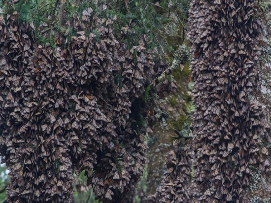 | Durante la hibernación, disminuyó 14.7% la superficie ocupada por la mariposa que migra de Canadá a Michoacán y Edomex; autoridades aseguraron que no hay riesgo que desaparezcan | ||||||