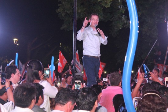 “José Antonio Meade es un cínico y un corrupto”, agregó ante unas 5 mil personas reunidas en la plaza central de este municipio, según los organizadores. Durante un mitin en esta ciudad del oriente de Yucatán, donde estuvo acompañado del candidato panista a la gubernatura, Mauricio Vila Dosal, el queretano dijo con sarcasmo: “Es que a su llegada a Yucatán (por Meade), le informaron que está el PRI abajo en las encuestas y por eso van a perder”. Y luego arremetió: “Me descalifica porque está desesperado y con su carita de mosquita muerta, es un cínico y corrupto, por eso vamos a ganarle”. "Es muy ingenuo Meade, debido a que ya pactaron los del PRI con (Andrés Manuel) López Obrador, y por esa razón ya hay un acuerdo entre Morena y el PRI; por eso se llama ahora PRIMOR". "Juntos sabemos que con los gobiernos del PRI hay corrupción, que se roban el dinero de la gente habiendo necesidades, van al hospital y no les dan los medicamentos que necesitan, porque sí hay presupuesto solo que se roban el dinero", señaló. Ricardo Anaya también mencionó que el candidato a la gubernatura, Mauricio Villa, tiene las mejores propuestas, por eso ganó el debate. |