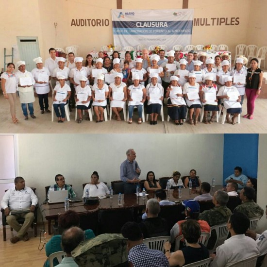 El alcalde destacó que el gobierno municipal por medio de la Dirección de Desarrollo Económico y Turismo coadyuva de manera eficaz con el Sistema Nacional del Empleo y el Sistema Estatal del Empleo, para que habitantes con iniciativa, adquieran nuevos conocimientos y se ganen la vida a través del autoempleo. “Ustedes recibirán un documento que va a avalar que tomarán el curso como debe de ser, con una capacitación totalmente apegada a los planes de estudio y me da mucho gusto estar aquí con todos ustedes para decirles felicidades, porque este es el inicio de una nueva vida” les dijo Jorge Vera a las mujeres que recibieron los cursos. Seguidamente se refirió a los avances que se tienen en materia carretera tal y como lo había prometido el gobernador Miguel Ángel Yunes Linares en su histórica visita en Lomas de Vinazco. Les dijo que ya se colocan alcantarillas con la finalidad de que drene adecuadamente el agua de las lluvias. Los trabajos que se hacen en el arreglo de la carretera es toda una realidad, cuando muchos apostaban que era una falsedad, que no se iban a realizar los trabajos y mucho menos terminarlos y se está comprobando lo contrario, se están construyendo ya los diferentes pasos para que a la hora de encarpetar el agua fluya sin perjudicar esa gran inversión que se está haciendo de noventa y cuatro millones de pesos. Por la tarde el presidente de los alamenses presidió una reunión con el Comité Municipal de Protección Civil, donde dio los pormenores históricos de las inundaciones más severas que ha sufrido el municipio y los mecanismos que se implementaron para proteger a los habitantes durante y después de los eventos climáticos. Derivado de las inundaciones el gobierno municipal trabaja intensamente apoyado por elementos de la Marina y el Ejército, Protección Civil Estatal, Cruz Roja y desde luego el Desarrollo Integral de la Familia que prepara alimentos y alojamiento para las familias damnificadas en los diversos albergues que se instalan. |