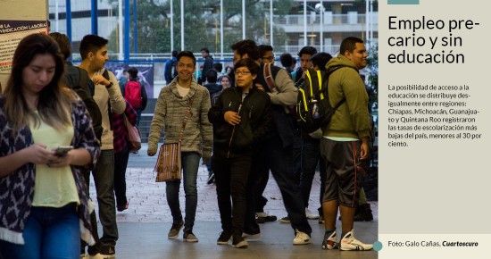 La posibilidad de acceso a la educación se distribuye desigualmente entre regiones: Chiapas, Michoacán, Guanajuato y Quintana Roo registraron las tasas de escolarización más bajas del país, menores al 30 por ciento. En los últimos dos sexenios los ingresos mensuales de los jóvenes de 25 a 29 años se han ido reduciendo, sobre todo en aquellos con mayor estudio. Por ejemplo, el salario promedio mensual de las mujeres con licenciatura en el año 2005 era de 8 mil 151 pesos y para 2017 bajó a 5 mil 907 pesos. En el caso de los hombres, los que estudiaron una carrera universitaria era de 8 mil 911 pesos mensuales en 2005 y en 2017 pasó a 5 mil 766. El abandono escolar y los empleos mal pagados son dos rasgos que caracterizan a los jóvenes en México, reveló un reporte del Instituto Belisario Domínguez (IBD) de la Cámara de Senadores. “A pesar de que la matrícula de educación media y superior creció en 72.5 por ciento entre 2000 y 2015, persiste un grave fenómeno de abandono escolar en ambos niveles y de aguda desigualdad en la calidad de la oferta educativa”, precisó el informe “Oportunidades de educación y empleo para a juventud 2000-2017”. De acuerdo con el informe, en el periodo 2015-2016, el 15.5 por ciento de los jóvenes en México abandonó la escuela por circunstancias socioeconómicas, familiares y personales, y las relacionadas con la escuela. Datos de la Encuesta Intercensal 2015 del Instituto Nacional de Estadística y Geografía (Inegi) arrojan que 2.02 millones de mujeres y hombres de 13 a 17 años de edad, que deberían estar inscritos en la educación secundaria o media, no asisten a la escuela. Hay cuatro estados que tanto en 2000 como en 2015 registraron las tasas de escolarización más bajas del país (menores al 30 por ciento): Chiapas, Michoacán, Guanajuato y Quintana Roo. Después de ubicarse en el mismo rango en 2000, Zacatecas, Durango y Puebla lograron, quince años después, un crecimiento mayor a 10 puntos porcentuales. Guerrero y Oaxaca entraron en el rango de los porcentajes más bajos en 2015, al incrementarse solo 7 puntos en cada caso. La Ciudad de México es un caso atípico, pues debido a la concentración de la población y de los servicios educativos, es la entidad con los mayores porcentajes de asistencia en el país: ahí acudían a la escuela 48 de cada 100 jóvenes en el año 2000 y 56 de cada 100 en 2015. Entre 2000 y 2015 el número de jóvenes que concluyeron la media superior pasó de 577 mil 784 a un millón 225 mil 111, mientras que la matrícula de primer grado de educación superior pasó de 503 mil 909 a 893 mil 279, destacó el informe. La posibilidad de acceso a la educación se distribuye desigualmente entre regiones y entre estratos socioeconómicos de la población: La matrícula de licenciatura se concentra en el centro del país y en algunas otras entidades; la Ciudad de México y el Estado de México tienen la cuarta parte de ella, y este indicador apenas se ha modificado desde el año 2000. Entre ese año y 2015 solo Jalisco, Puebla, Veracruz y Nuevo León tuvieron porcentajes superiores al 5 por ciento de la matrícula nacional. Sin embargo, el documento detalló que el incremento en la cobertura no ha reducido la desigualdad de oportunidades de acceso a este nivel, puesto que los nuevos espacios han sido ocupados por jóvenes cuyas familias poseen mayores recursos socioeconómicos. La proporción de estudiantes que habiendo concluido la educación media no continúa hacia la educación superior —ya sea porque no solicita su ingreso o porque es rechazada— ha sido creciente desde el año 2000. “México se encuentra gravemente rezagado no solamente frente a los países de la Organización para la Cooperación y el Desarrollo Económicos (OCDE) sino también respecto a los de América Latina”, indicó el documento del Instituto Belisario Domínguez. Destacó que el reto para ampliar las oportunidades de educación superior es enorme: se tiene que dar cabida a todos los egresados se requeriría crear instituciones, distribuidas regionalmente, con capacidad, en conjunto, equivalente a la de la UNAM, que actualmente atiende casi 350 mil estudiantes. Al respecto, la Asociación Nacional de Universidades e Instituciones de Educación Superior señaló que para los siguientes quince años “se incrementará la demanda de ingreso a la educación superior como resultado de la obligatoriedad de la educación media superior y su universalización para 2021, la disminución del abandono escolar en ese nivel y el mejoramiento del índice de transición hacia la educación superior. Un escenario altamente deseable para 2030 es que México haya entrado de lleno a la fase de universalización, con una tasa bruta de cobertura del 65 por ciento y con una disminución notable de las brechas estatales”. SUELDO DE PROFESIONISTAS CAE EN ÚLTIMOS DOS SEXENIOS De acuerdo con el documento, a partir del año 2005 los ingresos mensuales de los jóvenes de 25 a 29 años se ha ido reduciendo, sobre todo en aquellos con mayor estudio. Por ejemplo, el ingreso promedio mensual de las mujeres con licenciatura en el año 2005 era de 8 mil 151 pesos y para 2017 bajó a 5 mil 907 pesos. Para las que tenían alguna Maestría ascendía a 10 mil 816 pesos en 2005 y descendió a 9 mil 904 en el 2017. En el caso de quienes estudiaron un Doctorado, el salario promedio en 2005 era de 15 mil 395 pesos y cayó hasta los 8 mil 840 pesos el año pasado. En el caso de los hombres, el reporte del Instituto Belisario Domínguez arrojó que el salario que ganaban los que estudiaron una carrera universitaria era de 8 mil 911 pesos mensuales en 2005 y en 2017 pasó a 5 mil 766. Para los que tenían Maestría su sueldo era de 17 mil 574 en 2005, cifra menor a los 10 mil 69 pesos que ganaban en 2017. Los que tenían un Doctorado su ingreso era de 16 mil 863 pesos en el 2005 y de 10 mil 163 en el 2017. |