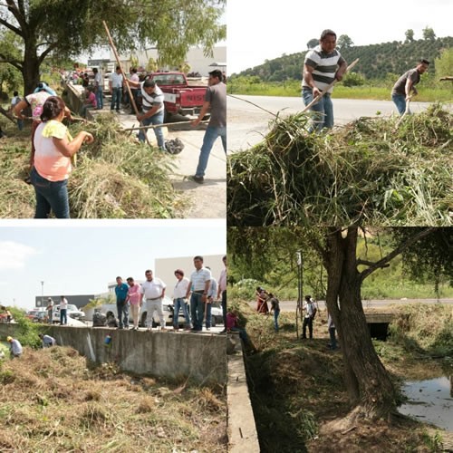 | *Los trabajos de limpieza se hacen con el fin de que la zanja, libre de basura, pueda drenar las lluvias propias de la temporada que se avecina. *Personal de las dependencias del gobierno municipal, trabajaron conjuntamente con hombres y mujeres que radican en esa zona. | ||||||