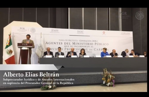Su pronunciamiento se da en un contexto en el que la PGR y el Poder Judicial de la Federación chocan por la creación de la comisión de la verdad para la investigación del caso Iguala. Durante la ceremonia de toma de protesta, Elías Beltrán señaló que de los agentes del ministerio público de la federación, que se incorporan al servicio profesional de carrera, “son litigantes del Estado y garantes de que el procedimiento penal cumpla con sus fines constitucionales”. Acompañado por Roberto Andrés Ochoa Romero, subprocurador de Control Regional, Procedimientos Penales y Amparo, el encargado de despacho de la PGR comentó que serán ellos los que velen por los derechos humanos. “El valor de las acciones que realizan para esclarecer los hechos, sancionar a delincuentes, lograr que se reparen los daños y, sobre todo, para proteger a las personas inocentes y a la sociedad en su conjunto”, mencionó. En su oportunidad, el subprocurador Ochoa Romero, dijo a los agentes que los procesos y los procedimientos que dan vida a la vocación constitucional y legal de la institución, son los mismos como Procuraduría que como Fiscalía. “No hay nada que cambiar en ese sentido, nos regimos a través de cuatro piezas legislativas de orden nacional que, de principio a fin, articulan los esfuerzos institucionales en materia de investigación y persecución del delito”, agregó. |