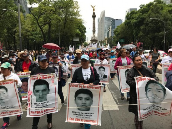 La movilización de los padres de los 43 partió casi a las 17:00 horas del Ángel de la Independencia y llegará al Hemiciclo al Juárez donde los organizadores de la marcha darán un pronunciamiento.